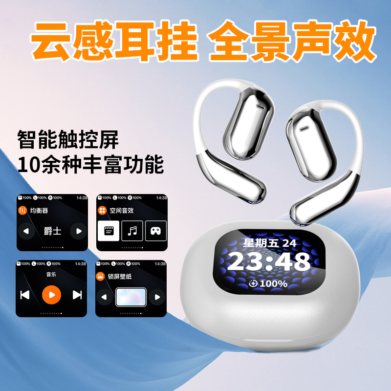 LCD Color Screen Bluetooth Headset Open No-Ear Sports Wireless Intelligent AI Translation Headset